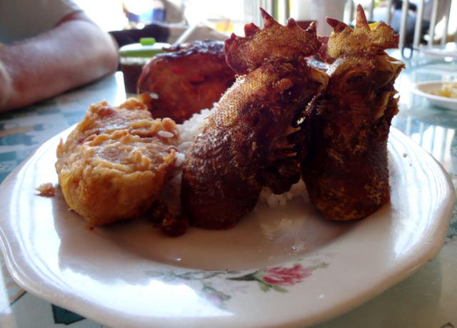 Well your title was very clear. I qoute moms comment of the picture of the chicken heads “Ewwww! That is something Miles would do.”:) I don’t know how you guys can eat that. Glad you are still having a good time.