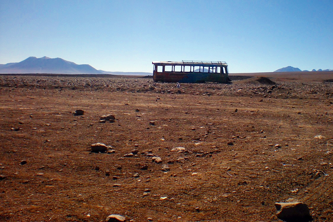 Leaving Uyuni behind, we head southwest toward the desert of Chiguana. Sand, shrubs and the occasional llama are our only companions here in one of the most underdeveloped areas of Bolivia. Fuel continues to be a challenge as all of the stations along our route are not permitted to serve foreigners. Thankfully, we attract the curiosity of the children in a small village and they lead us to their home, where a much-needed container of fuel is stored under the kitchen table. Of course, where else would you keep it? The lady-of-the-house kindly obliges and accepts our payment for her petrol. We now have everything that we need to make our run into Chile.