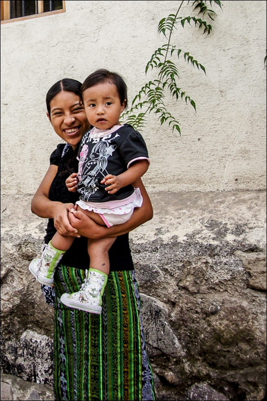 Travelling out of this area, we saw many examples of the typical Guatemalan home – a one-room house of brick, concrete blocks or traditional bajerequ (a construction of stones, wooden poles and mud), with roofs of tin, tiles or thatch. In the countryside, in villages, and in towns, most of the country’s Maya majority live in this type of house, grouped close to several others who make up an extended family.
