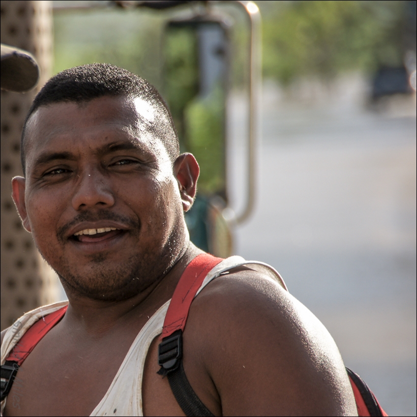We’re rolling down the road in Guatemala, heading toward the El Salvador border, and Tracey comments again on the fabulous roads, the smells, and the scenery. The road is bordered by huge shade trees and flowers fill the ditches. The road itself is a great gently curving country drive that puts us in a very peaceful mood – a great start to the day.