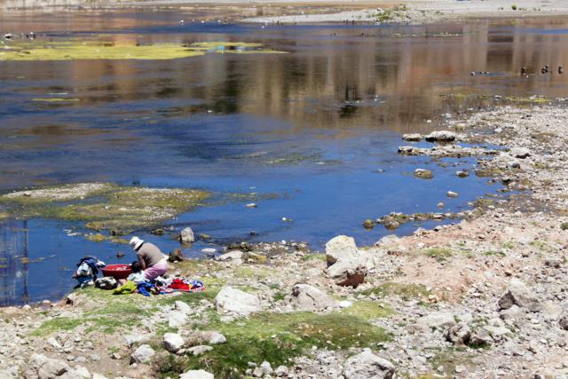 Laundry time at the river alongside the road.