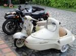 Our destination for the day is Pereira, the coffee region’s largest city. A chance encounter on our second day in the city leads us to the perfect home-away-from-home. As I stand on the side of the road fielding endless questions from the locals, a beautiful pale yellow Lambretta motor scooter pulls up behind the Ural, and off hops its driver sporting a helmet emblazoned with the Union Jack. I immediately recognize that this is not a typical Colombian. I am about to meet one of the most enthusiastic two and three-wheel motoring enthusiasts we have ever encountered, British expat Alan Gardiner. Our meeting was meant to be. We learn that Alan has a farm near Pereira which commonly serves as a hostel for motorbikers passing through the area. We take Alan up on his offer of accommodation at Villa Toscana. Alan’s home, with its lovely garden and pool, proves to be the perfect place to take a few days’ break from riding. We also thoroughly enjoy Alan’s company as we share passions for music and motoring. Alan is undoubtedly a wealth of knowledge when it comes to British Northern Soul music and Lambretta scooters. He has several Lambrettas in his collection, including one to which he has added a sidecar.