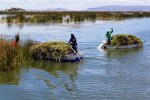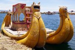 Our stopping point for the day is Puno, a ramshackle and fairly uninteresting city but a good jumping-off point to explore Lake Titicaca. In the morning we take a boat to the Uros islands. As improbable as it sounds, the Uros Indians live on floating “islands” made by hand from the buoyant totora reeds that grow abundantly in the shallow waters of the lake. The lives of these people are interwoven with these reeds, which are also used to make the massive tent-like thatched huts where they reside, to make their splendid gondolas with animal-head bows and to make up part of their diet.