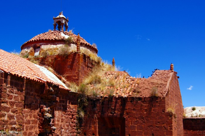 Further along, in Zapata, we spot a church with a rickety, toppling steeple that looks worthy of exploration. After making our way into the village, we discover that the church we had seen isn’t actually all that interesting, but we happen across the ruins of another church that are truly fascinating. The decaying architecture looks part Inca and part colonial – unlike anything else we have seen. Much of the building is still intact but it looks like it has been closed down for a very long time and the grounds are now home to yet another herd of sheep. We spend over an hour wandering around the grounds, wishing that we could see more of the interior than what we can make out through a tiny hole in one of the doors. Once again, here we are at a fabulous site that is not mentioned in any guidebook.