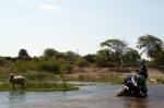 There is no bridge, just a river flowing across the road. Reason number 846,000 to buy an Ural. Our three wheels let us giggle through a slipping and sliding route across the river with no drama . . . until I look in the rearview mirror. Whump! Stefan is suddenly face-down in the river as his bike drops hard onto the rocks. We stop and run back to help. The river bottom is covered in a layer of slippery goop. Thankfully Stefan is fine, but green algae and scum cover his suit and we are reminded of ‘The Swamp Thing’. The ground is so slick that it takes all three of us to lift the bike. Tracey plants her feet at the downstream side of the tires to keep them from sliding away as Stefan and I lift. As Stefan removes the wet gear from his newly dented pannier to inspect the damage, we are watching a local bike approach.  Suddenly, Zing!  The bike heads towards us and executes a perfect pirouette, tossing a girl off the back to land standing up on dry ground with her school books still in hand. Her boyfriend practices the new ‘Stefan Shuffle’ to climb out from under his motorcycle and join our crowd. Once we help replace the chain on the young man’s bike, we continue on our way to the next town.