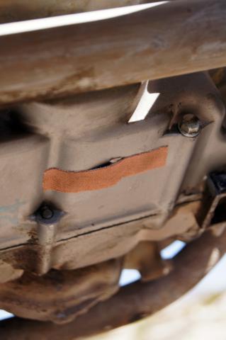 A short while later, Stefan turns off into an abandoned village so that we can check out at an interesting-looking church. As we head back to the bike, Stefan sees a large pool of oil under his bike. Big Trouble. I head to the road to see if I can still flag down Miles but he is nowhere in sight. Stefan spends a few minutes examining the bike before determining that there is a major oil leak. We have managed to hit a rock hard enough to puncture the skid plate and create a hole in the engine case. He hops on and speeds off down the road, trying to catch Miles. It takes a moment before it sinks in. I am abandoned . . . in a deserted village . . . in the middle of a steaming hot desert . . . where I haven’t seen another person for hours . . . and it is about 1 hour before sunset . . . and I have nothing but myself and my motorcycle gear. I have no idea how long it will be before Miles and Stefan return. It seems logical that they will deal with Stefan’s bike before heading back to pick me up, so I could be here for a while. My mind is prone to heading in all sorts of strange directions in these uncomfortable situations. Yikes!
